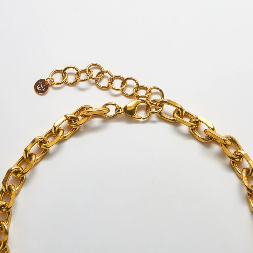 • Color: Gold Material: Gold plated over stainless steel chain and components