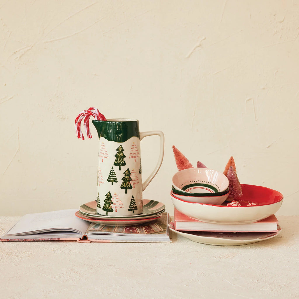 48 oz. Hand-Painted Stoneware Pitcher w/ Trees