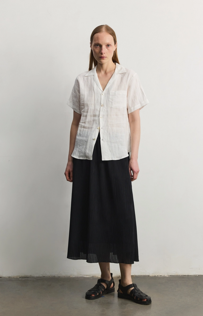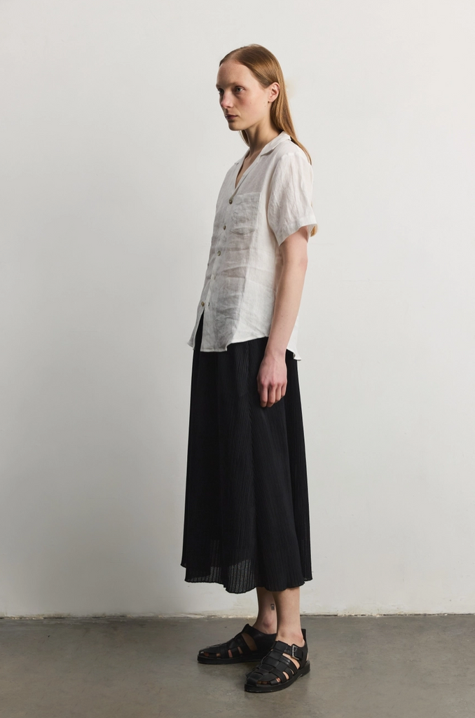 The Leslie Skirt is a fully lined plisse skirt. It's crafted from a stretchy polyester-spandex blend and features an elasticated waistband for ease of wear. The midi length and A-line shape offer a flattering silhouette. With its plisse fabric, this skirt adds a subtle modern touch to your classic midi skirt.