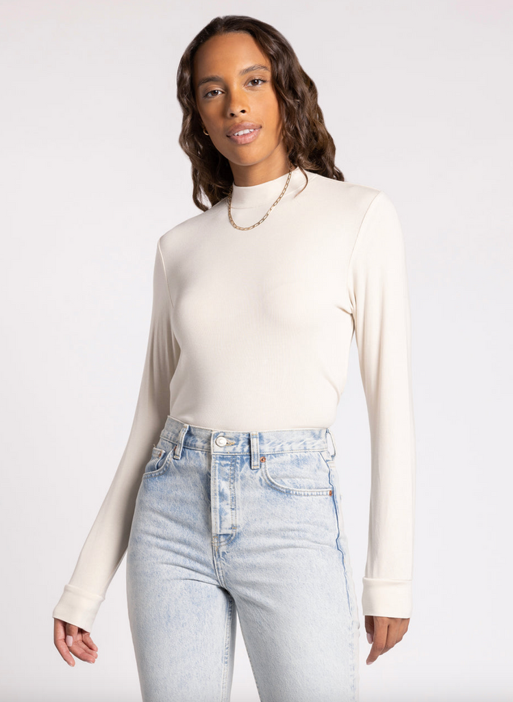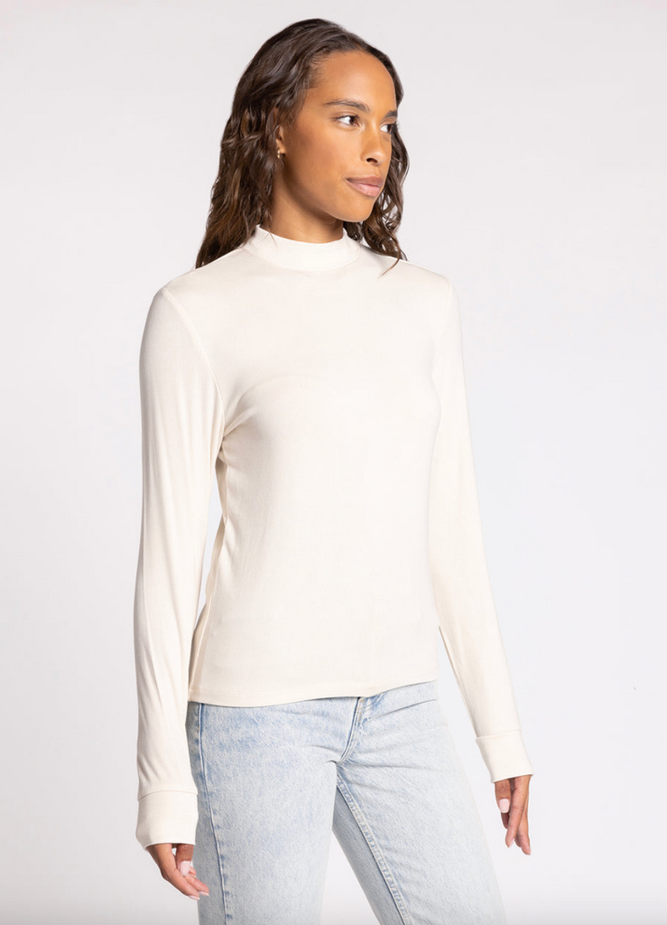 - Made to be worn everywhere, this sleek long sleeve is featured in a formfitting silhouette and seamless fabrication with a chic mock neckline.