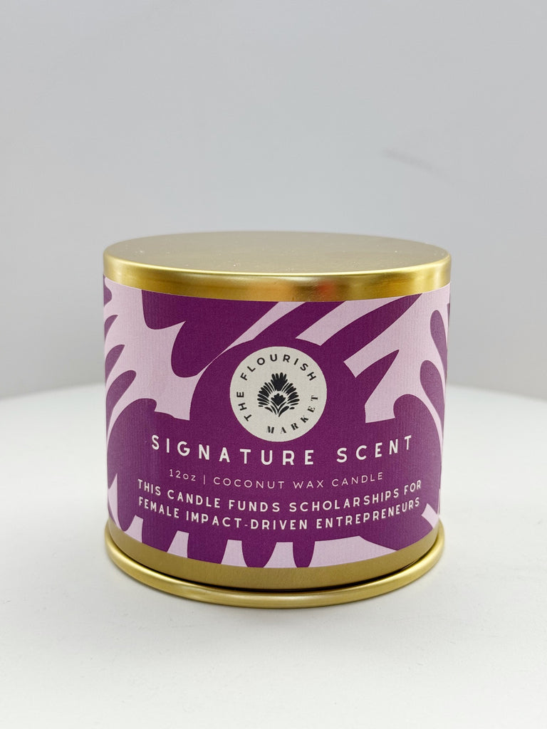 Our long- awaited customer favorite signature scent candles are back! And, this time in a twist-top gold vessel and hand-poured with 100% coconut wax in our customer-favorite signature Flourish scent — known for its warm, balanced notes and clean burn.