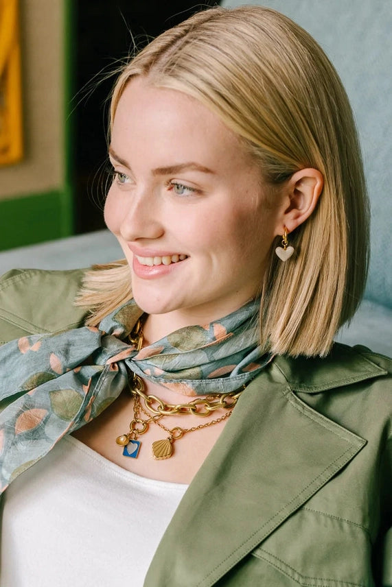 This art deco-inspired gold charm locket captures the simple beauty of the sea. A stylized shell charm crafted from 14k gold plated stainless steel dangles from a dainty gold chain. The charm can be opened, making it the perfect hiding place for a small image you want to keep close to your heart.