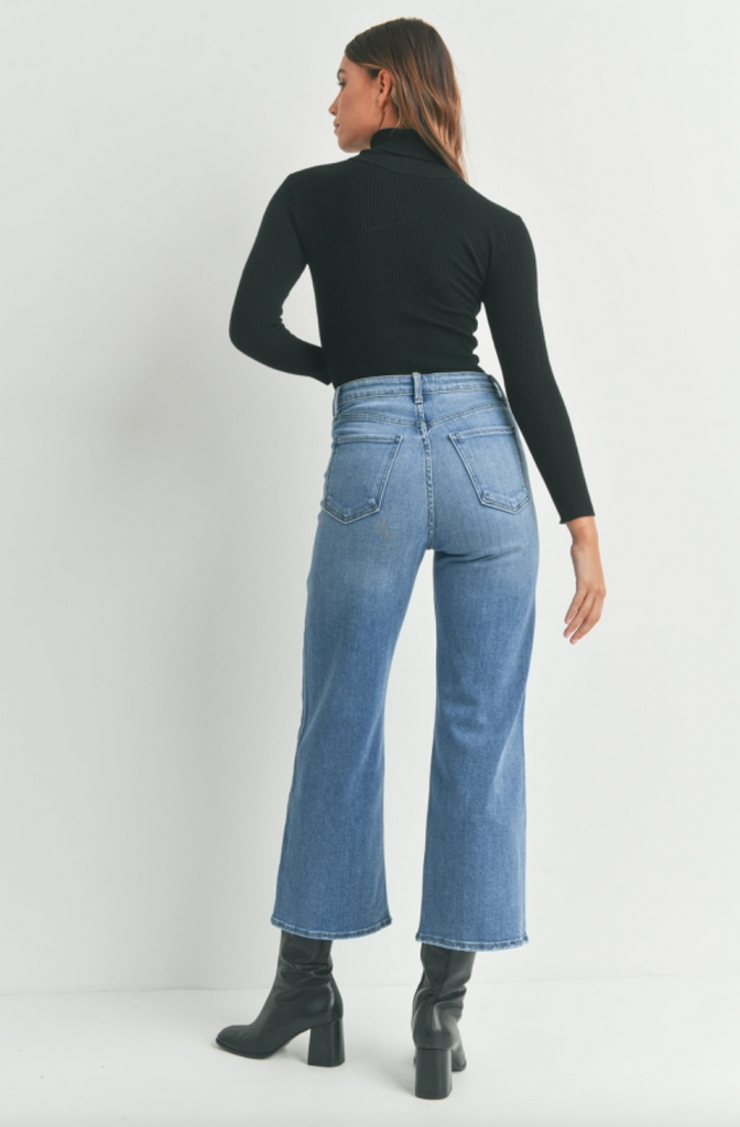 Medium Denim - Cargo Pocket Wide Leg Jeans
