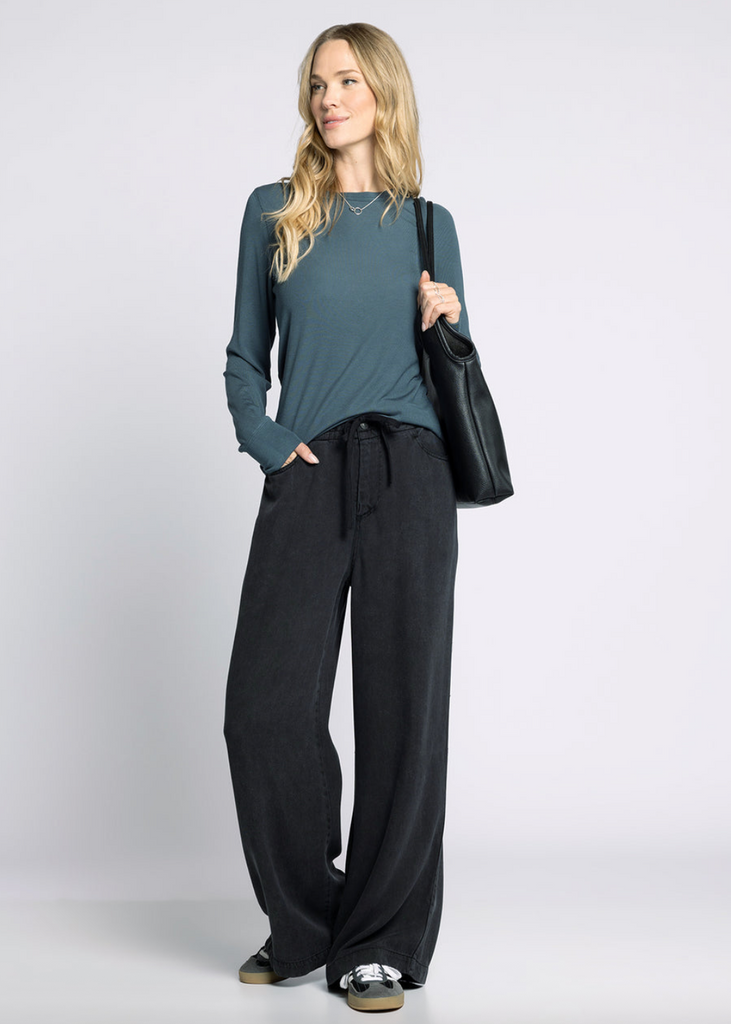 Elevate every look with these effortlessly essential pants featured in a wide leg, relaxed fit and soft fabrication, comfy drawstring waist, and dual side pockets.