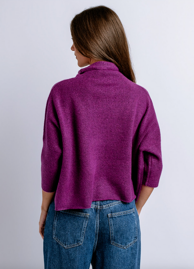 - Boxy turtleneck sweater in solid criss-cross stitch