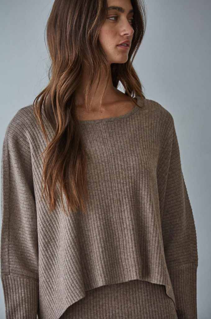• Knit sweater ribbed round neck long sleeve pullover top with front slits