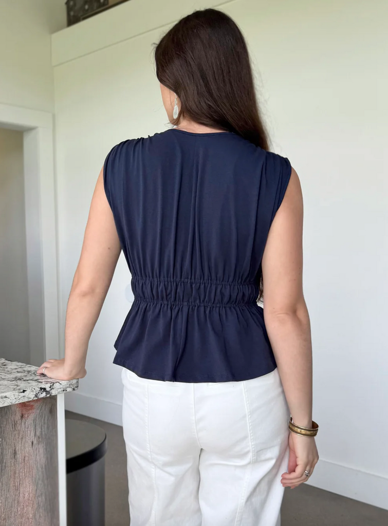 - The Kaci tank boldly sculpts your waist with a silhouette that defines. It's the perfect length that will lengthen your proportions, making a confident statement wherever you go. Enjoy the lightweight and breathable fabric crafted with gathering that gently drapes over your torso.