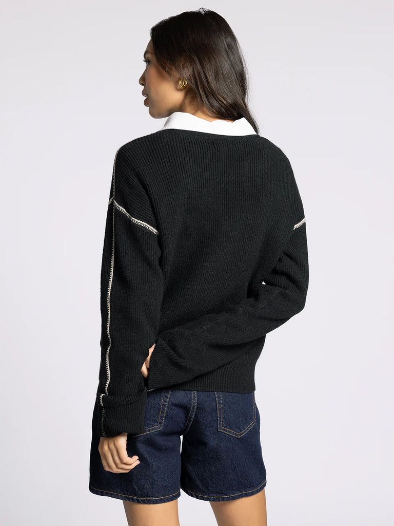- This so soft sweater is sure to be your go-to this season, featured in a relaxed drop shoulder fit with contrasting pipping detail, designed in a ribbed kint fabrication.