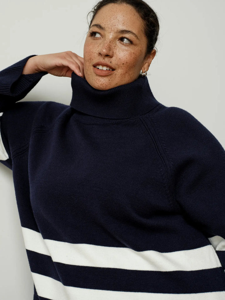 This is your ultra-cozy alternative to a classic wool sweater. It’s so luxe and feels like cashmere, but it’s pill-resistant, and you can wash it yourself! It features a generous turtleneck that sits away from your neck, dropped arm holes, and floaty fit.