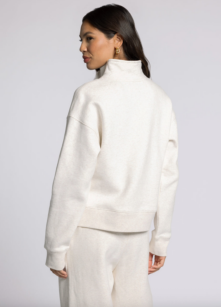 • Meet our newest fabric - Serenity Fleece! Serenity fleece is ultra-soft and cozy with a buttery plush yet lightweight feel, super comfy, without the bulk. The 1/4 zip is featured in a drop shoulder silhouette and half zip collar.