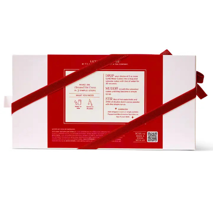 Directions: DROP 2 or more Luxe Mixer Cubes into your cup (use the same flavour cubes or mix flavours.) POUR 8oz hot cocoa into your cup. STIR the cubes into your hot cocoa.