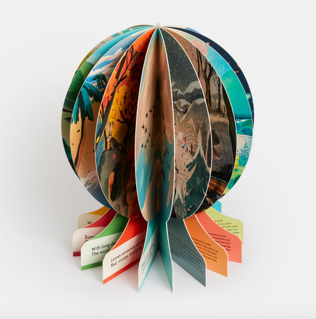 Explore Earth’s four seasons with this charming read-aloud introduction to weather around the world. Beautifully illustrated and cleverly designed, Our Seasons opens and folds back into a sturdy circular globe fastened by a hidden magnetic closure.