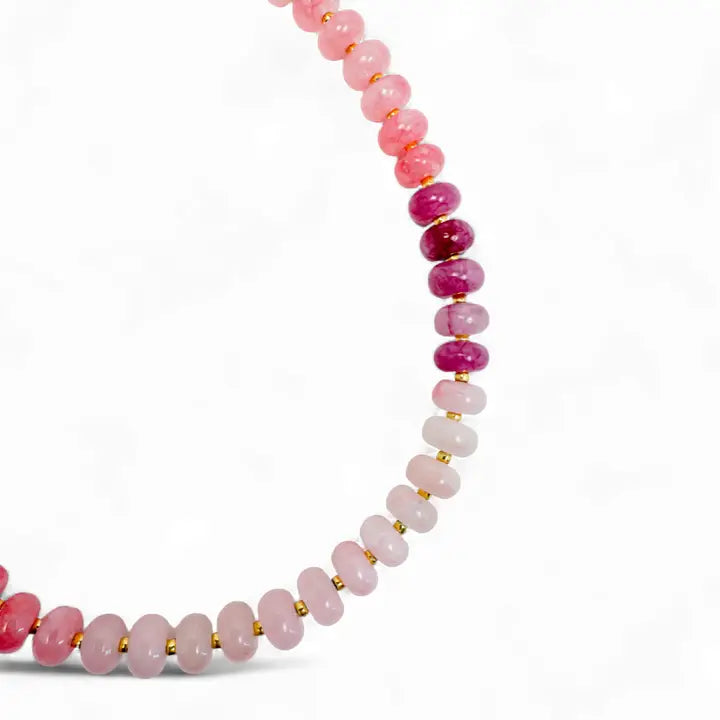 Upgrade your jewelry game with our handmade Bold Gemstone Necklace! The semi-precious rondelle beads elevate your necklace; while the 8mm stones give off a bold and stylish appearance. Make a statement with this unique piece and elevate any outfit effortlessly.