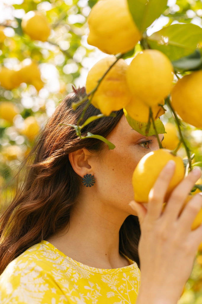 The Navy Maria Studs add a touch of modern elegance with their sleek, floral-inspired design and rich navy hue. Perfect for everyday wear, these lightweight studs make a bold yet versatile statement.