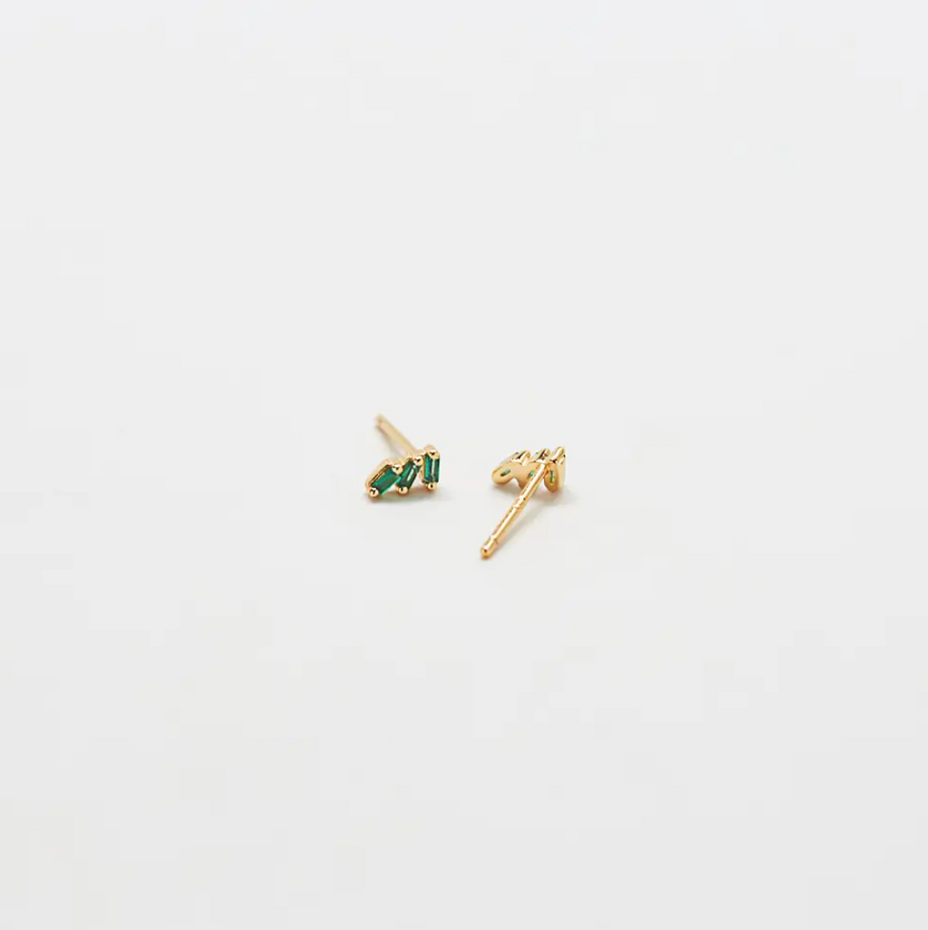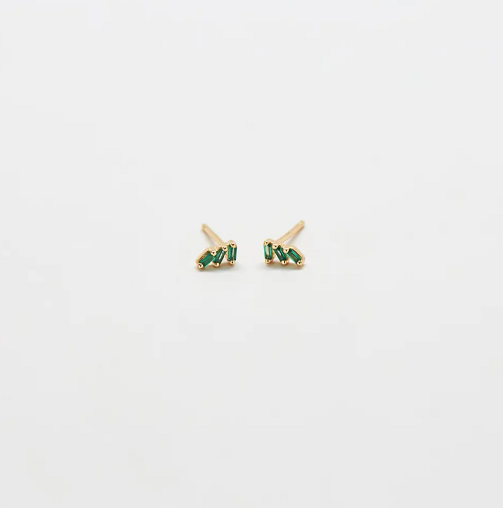 Green Triple Baguette Gold Studs