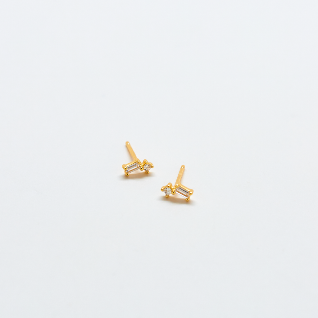 Add a touch of sparkle to your everyday earrings with this pair of geo baguette stud earrings. Can be added to a second piercing for the perfect layered look.