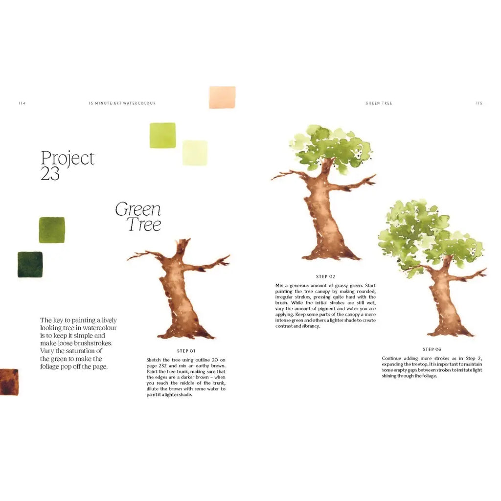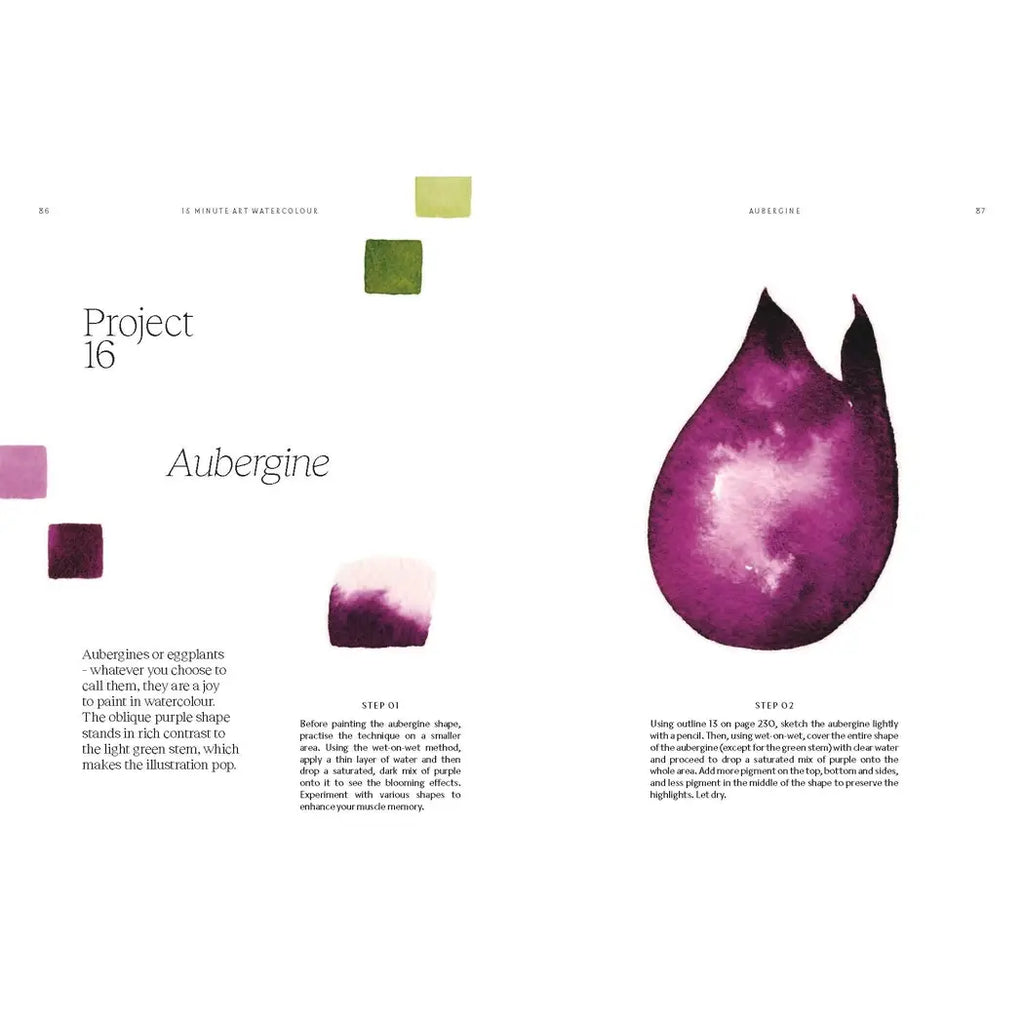 15-Minute Art Watercolor explores the art of watercolor with fifty 15-minute projects. From fruits and fish to flowers, animals, and anatomy, Jola encourages you to explore this craft in a relaxing, free, and fun way.