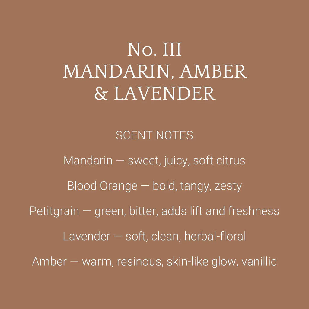 - Top: Mandarin, Blood Orange, Petitgrain – bright, citrusy, fresh
