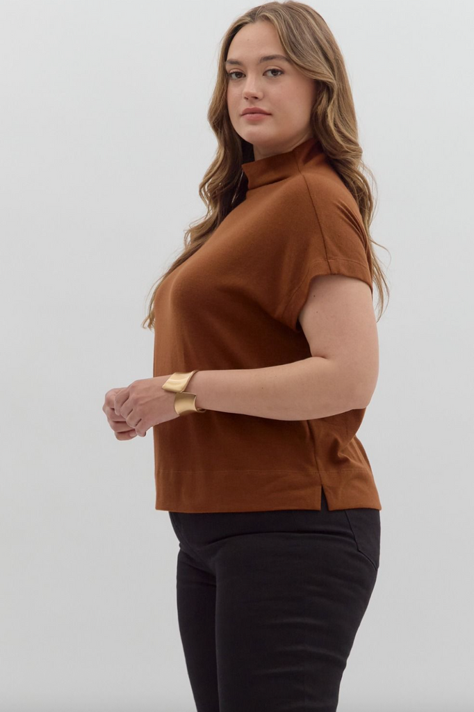 Solid knit mock neck pullover top. Unlined. Knit. Non-sheer. Lightweight.
