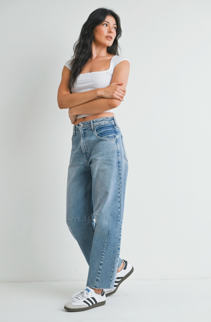 - Light Denim - Barrel Jean w/ Seams
