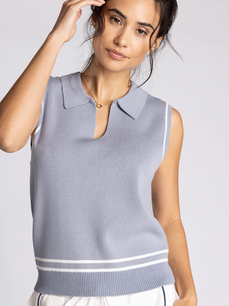 - So cool and sporty, this forever classic tank is featured in a relaxed fit with classic collar and sporty striping at hem lines for the perfect finishing touch.