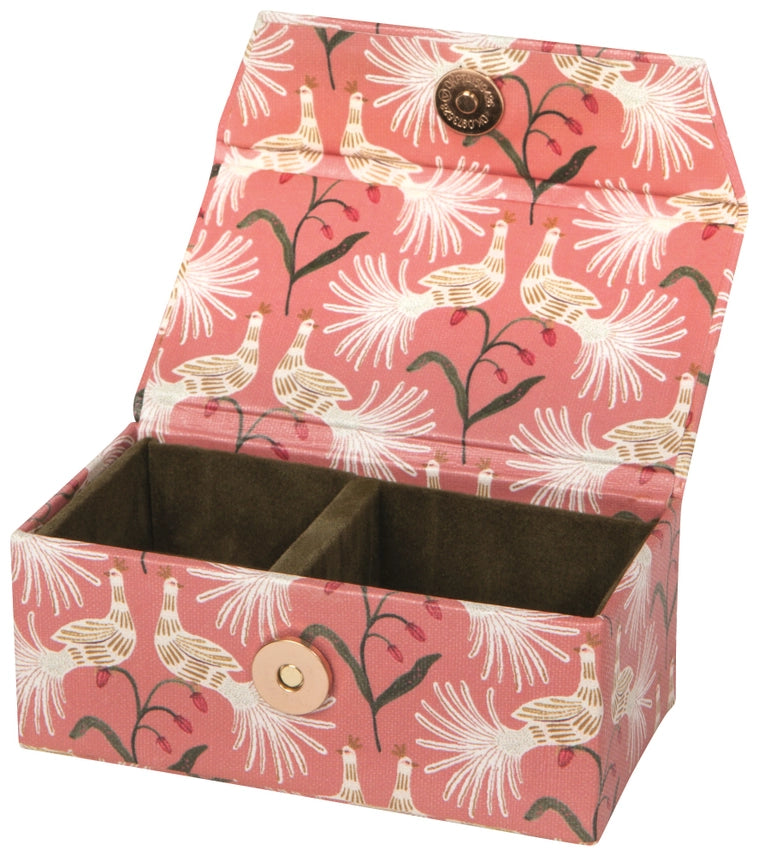 Strands, rings, and other tiny treasures are safe and sound when you’re on the go. Printed with Danica Studio designs, these lightweight yet sturdy boxes are easy to take with you as you explore the world. A glorious show of feathers unfurls awe and admiration. Nature’s beauty is ornamented by colorful creatures on proud display in this fully fledged collection.